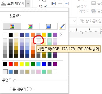 ✅ 이번에는 한글2022에서 색상을 시멘트색(178,178,178) 80% 밝게 로 변경하는 방법을 알아보겠습니다.